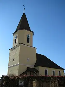 1771 stürzte der Kirchturm des Vorgängerbaus, der um 1200 errichtet wurde, ein. Der Neubau des dreiachsigen Langhauses und die Aufstockung der verbliebenen Stockwerke des Turmes der Vorgängerin mit einem polygonalen Obergeschoss und einem Spitzhelm erfolgten 1773. Die flachgedeckte Chorturmkirche besitzt eine moderne Vorhalle. Der Orgelprospekt der Vorgängerkirche von 1732 blieb erhalten. Neben mehreren Emporen befindet sich im Kircheninneren ein hölzernes Kruzifix aus der Zeit um 1730. Das Taufbecken mit dem Motiv der Verkündigung Mariens ist eine Nürnberger Arbeit und stammt aus dem 16. Jahrhundert.[4][5]