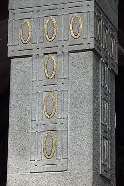Die kupferbeschlagenen Portale sind alle mit Rauten versehen, einem Ornament das im ganzen Bau immer wieder aufgenommen wird.