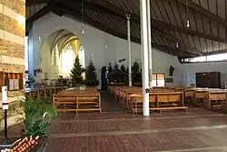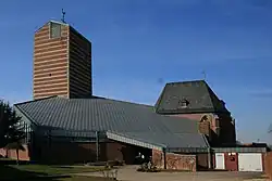 Erst in den 1960er Jahren konnte mit dem richtigen Wiederaufbau begonnen werden. Mit den Planungen hatte man den Mönchengladbacher Architekt Heinz Döhmen beauftragt. Unter Einbeziehung des Turmstumpfes und des Chors wurde nach seinen Plänen das heutige moderne Kirchenschiff zwischen 1963 und 1965 erbaut. Der Aufbau des Turms folgte einige Jahre später. Die feierliche Kirchweihe erfolgte am 13. September 1969.[2]