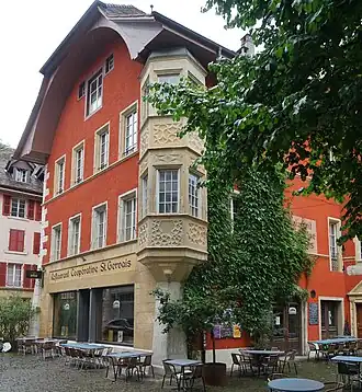Das Gebäude wird auch «Abtenhaus» genannt. Es wurde um 1577 (1575–1599) neu erbaut. Der Schaffner des Ordens bewirtschaftete von hier aus die Rebberge am Bielersee. Onofrius Nieschang fügte 1620 einen Eckerker hinzu. Mehrfache Umbauten folgten. Die Ründi stammt von 1810, zu dieser Zeit wurde das Innere für den Kaufmann und Bankier David Schwab umgebaut. Das erste Volkshaus der Schweiz mit der Gastwirtschaft Helvetia[1] wurde 1892 hier eröffnet. Es zog 1916 in das Gebäude Juravorstadt 9 um. Die «Societa Cooperativa Proletaria» erwarb 1920 die Liegenschaft. Sie gehört zu den ältesten Genossenschaften des Landes, wurde später in «Coopérative St. Gervais» umbenannt und betrieb dort ein Restaurant. (Der deutsche Revolutionär Johann Philipp Becker hatte in den 1840er-Jahren ein Café Saint Gervais in der Obergasse 33 eröffnet.) Das Haus ist weiterhin im Besitz der Coopérative welche heute unter «Genossenschaft St. Gervais»[2] firmiert, die Bewirtschaftung ist verpachtet.[3]