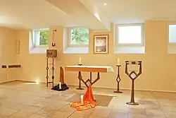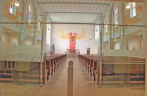 - Der Altarraum wurde um eine Stufe erniedrigt.