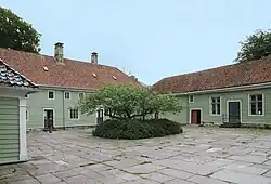 Scheunen und Ställe und Schuppen umgeben den Innenhof. Südöstlich des Hauptgebäudes befinden sich das „Friskestuen“ aus dem Jahr 1745 (ursprünglich für Nicht-Leprakranke) und andere kleinere Nebengebäude. Im Westen und Norden liegen die Zugänge.