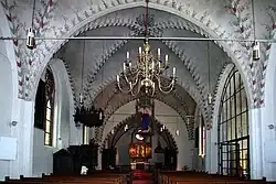 Die Emporen schmücken spätbarocke Darstellungen von Christus und den Aposteln. Die Bilder wurden nach der Vorlage von Christoph Weigel gemalt. An der Wand hängt ein spätbarockes Triumphkreuz.