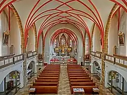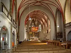 Die Saalkirche misst heute eine Gesamtlänge von 47 Meter, das Kirchenschiff einschließlich der Seitenkapellen eine Breite von 17,50 Meter. Die Raumhöhe beträgt 12,50 Meter.