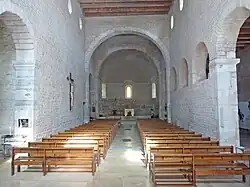 Die Kirche hat drei Schiffe. Der Chor besteht aus einer Hauptapsis und zwei Nebenapsiden, die sich in der Verlängerung von Mittelschiff und Seitenschiffen befinden. Als Baumaterial wurde Kalkstein aus dem Sundgau verwendet.
