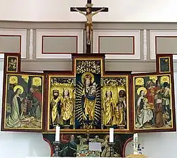 Der Bau in Oberrottenbach besitzt einen farbenfroh und reich mit Gold verzierten denkmalgeschützten Flügelaltar aus dem 15. Jahrhundert aus den Händen Valentin Lendenstreichs.