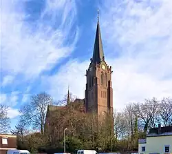 Aufgrund der stetig steigenden Bevölkerungszahl wurde die Kirche schon nach nur 10 Jahren zu klein und der Kirchenvorstand beschloss die Erweiterung. Dazu wurde der alte Glockenturm abgerissen und die Kirche zwischen 1910 und 1912 nach Westen hin um zwei Joche verlängert und ein neuer Glockenturm erbaut. Die Pläne hierzu lieferte der Kölner Architekt Theodor Roß.[1]