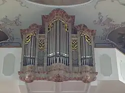 Die Orgel mit 13 Registern auf zwei Manualen und Pedal wurde von Orgelbau Sandtner aus Dillingen an der Donau 1987 neu gebaut. Das als Brüstungswerk angelegte Instrument weist einen neobarocken Prospekt und folgende Disposition auf:[1]