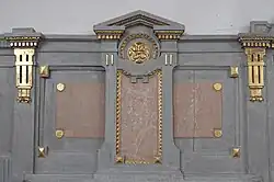 An die Außenmauer des Chors wurde 1899 das Sandsteinepitaph für Heinrich Völkher von Freiberg († 1596) und seine beiden Ehefrauen versetzt. Von dem ursprünglich dreiteiligen Epitaph, das ehemals in die Innenwand des Chors eingelassen war, ist nur noch das Mittelstück erhalten. Eine von Pilastern gerahmte Reliefdarstellung zeigt die Verstorbenen kniend unter einem Kruzifix.
