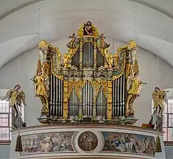 Die Orgel ist ein Werk (Opus 2252) von G. F. Steinmeyer & Co. aus dem Jahr 1971 mit 25 Registern auf zwei Manualen und Pedal.[1] Dabei wurde der Prospekt einer Orgel von Doser aus dem Jahr 1755 nach einem Entwurf von Johann Konrad Brandenstein aus Stadtamhof wiederverwendet.