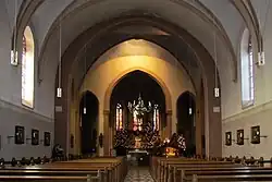 In der Kirche befindet sich einige Heiligenfiguren aus dem 18. und 19. Jahrhundert. Besonders zu erwähnen sind die 14 Kreuzwegstationen aus Terrakotta, die wurden im 19. Jahrhundert geschaffen. Ebenso erhalten ist ein Teil der historischen Buntglasfenster. Die ältesten Fenster befinden sich im Querschiff. Es sind Werke der Linnicher Werkstatt Glasmalerei Dr. H. Oidtmann aus dem Jahr 1915. Die Fenster im Westchor stammen ebenfalls noch aus der Vorkriegszeit, diese Fenster schuf Ernst Jansen-Winkeln 1935.[3] Die Orgel auf der Empore im alten Ostchor wurde von der Bonner Firma Johannes Klais Orgelbau 1926 erbaut. Das Instrument verfügt über 26 Register auf zwei Manuale und Pedal verteilt, die Traktur ist pneumatisch.