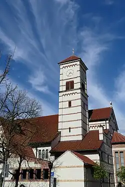 - ↑ Histor. Ansichtskarte Neu-Ulm, Krieger-Gedächtnis-Kirche; abgerufen am 17. September 2019.
