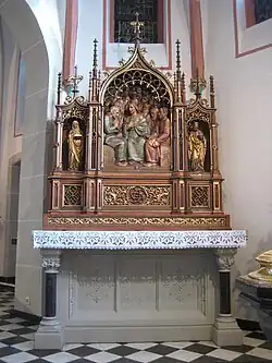 Neben dem linken Seitenaltar befindet sich in einer Nische die Figur der hl. Anna selbdritt, die aus dem frühen 16. Jahrhundert stammt.