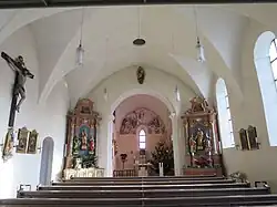 An der Westwand des Langhauses ist eine Empore zu finden, auf welcher sich die Orgel befindet. Eine Kanzel ist in der Pfarrkirche nicht zu finden.