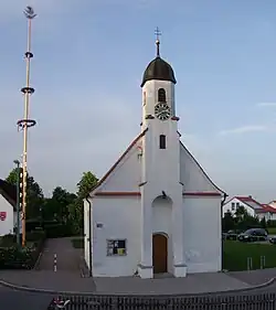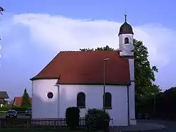 Bereits 1747 erlaubte der Generalvikar in Augsburg, den Vorgängerbau, der sich in einem äußerst schlechten Zustand befand, abzubrechen. Näheres über dessen Bauzeit und das Aussehen ist nicht überliefert.[1] Die neue Filiale der Amendinger Kirche sollte bei ungünstiger Witterung an Sonn- und Feiertagen und im Sommer am Abend den Gläubigen zur Verfügung stehen. Die Erlaubnis zum Bau der neuen Kapelle im heutigen Oberdorf unterhalb des Schlosses Eisenburg wurde etwa gleichzeitig mit der Abrissgenehmigung erteilt.[2] Erst am 18. Mai 1781 erlaubte das Bistum Augsburg die Benediktion durch den Dekan Franz Johann Thies. An der Südseite wurde 1956 eine kleine Sakristei mit einem blechgedeckten Flachdach angebaut.