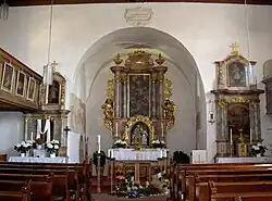 Der linke Seitenaltar enthält eine Nachbildung des Mariahilfbildes von Lucas Cranach dem Älteren, dessen Original sich im Innsbrucker Dom befindet. Der rechte Seitenaltar ist dem heiligen Wendelin gewidmet.