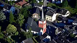 Die katholische Pfarrkirche wurde um 1230 als flachgedeckte romanische Basilika gebaut. Um 1500 wurde sie zu einer gotischen Hallenkirche mit Netzgewölben erweitert und mit einem hohen Chor versehen. Von der romanischen Ursprungskirche sind noch die Langhauswände und der Turm erhalten.