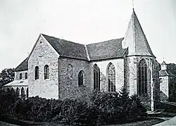 Baubeginn als ungewölbte Kirche mit Chorquadrat, flachen Querhausapsiden und doppelgeschossigem Westbau war wohl 1122. Der gerade Chorschluss wurde im Bauverlauf durch eine eingezogene Apsis ersetzt. Der Dachstuhl wurde nach dem Ergebnis einer dendrochronologischen Untersuchung um 1130 fertiggestellt. Danach wurde das Gebäude ausgemalt und ausgestattet. Der Westbau wurde in einer nicht bekannten Zeit abgebrochen. Sein Aussehen wurde nach Grabungen im Jahr 1940 nicht abschließend geklärt. Spätestens im 14. Jahrhundert wurden zweijochige Kapellen an der Stirnwand des Nordquerhauses und im Winkel zwischen dem Südquerarm und dem Langhaus angebaut. Zum Ende des 14. Jahrhunderts wurde die Chorapsis durch einen 5/8-Schluss und die Apsis am Nordquerarm durch eine flache rechteckige Nische mit einem großen Fenster ersetzt. Die Fenster im Seitenschiff wurden teilweise vergrößert und das gesamte Gebäude wurde eingewölbt. Diese Arbeiten wurden wohl gegen Mitte des 15. Jahrhunderts abgeschlossen. Von 1492 bis 1511 wurde die Südquerhausapsis durch eine Sakristei ersetzt. 1830 wurden alle Anbauten abgebrochen. Ein niedriger freistehender Glockenturm wurde in der Mitte des 19. Jahrhunderts nördlich des Chores aus geschlämmtem Bruchstein errichtet. Von 1882 bis 1886 wurde die Anlage umfassend saniert. Die Westwand wurde einschließlich Fundament und Strebepfeilern weitgehend erneuert. An der Chornordseite wurde ein Treppenturm und am Südquerarm eine neugotische Sakristei angebaut. Im Innenraum wurde die romanische Raumfassung nach Befund erneuert. 1935 wurden gotische Gewölbemalereien freigelegt, an den Pfeilern wurde der Putz abgeschlagen und die im 19. Jahrhundert wiederhergestellte Raumfassung überstrichen. Die vermauerten Seitenschiffe wurden ab 1958 geöffnet. Die nördliche Querhausapsis wurde 1963 auf dem alten Fundament rekonstruiert. Die Fundamente und das Mauerwerk wurden bis 1967 gesichert. Eine neue Sakristei wurde 1967 an den Südquerarm angebaut. Von 1988 bis 1989 wurde das Gebäude renoviert.