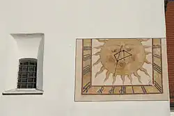 - Die beiden frühbarocken Skulpturen am Chorbogen stellen die Pestheiligen Sebastian und Rochus von Montpellier dar.
