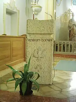 • Der Voraltar und der Ambo wurden 1996 von den Steinbildhauern Herbert und Otto Preuß angefertigt