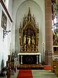 Der rechte Seitenaltar wird auch Schmerzens- oder Passionsaltar genannt. In der Mitte befindet sich eine Pietà, über der zwei trauernde Engel schweben. Die Tabernakeltür ziert ein Ecce Homo. Die beiden Seitenfiguren stellen links Jesaja mit Spruchband „Er hatte keine schöne und edele Gestalt …“ (Jesaja 52,2) und rechts Jeremia mit dem Schriftzug „… seht, ob ein Schmerz ist wie mein Schmerz …“ (Jeremia 1, 12) dar. Unter dem Altarsockel (Mensa) liegt Christus im Grab.