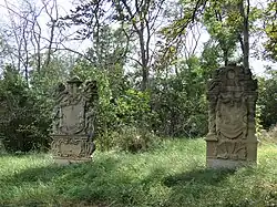 Der ehemalige Friedhof von St. Johannes liegt südlich der Kirche, von dieser getrennt durch einen Hohlweg. Hier befinden sich 13 barocke, reich dekorierte Grabsteine von außergewöhnlicher Qualität.