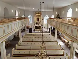 Zur Kirchenausstattung gehört ein klassizistischer Kanzelaltar, dessen Stipes aus Backsteinen gemauert ist. Bei der Renovierung von 1843/44 wurde fast die gesamte ältere Inneneinrichtung beseitigt. Zwischen Altartisch und Kanzel befindet sich eine geschnitzte Darstellung des Abendmahls. Von einem früheren Flügelaltar aus der Mitte des 15. Jahrhunderts haben sich sieben Figuren von Heiligen erhalten, die jetzt an den Wänden der Kirche angebracht sind. Der barocke Taufengel wurde 1730 gestiftet und ersetzte seitdem das frühere, im Dreißigjährigen Krieg zerstörte steinerne Taufbecken.