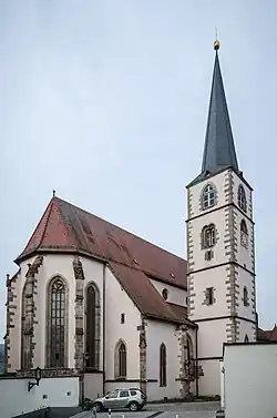 Im Jahr 1862 erarbeitete Pfarrer Georg Michael Rappert einen Plan zu einer Erweiterung der Kirche. Die Stadtverwaltung lehnte jedoch eine Übernahme der Kosten in Höhe von 4.000 Gulden ab, da die Neuerrichtung des abgebrannten Kirchturms bereits 10.000 Gulden gekostet hatte.[9]