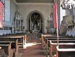 Im Jahr 1795 entstand die Empore, der alte Beichtstuhl, die Kommunionbank und die Bänke der Kirche; sie wurden vom Schreinermeister Michael Behringer aus Rannungen angefertigt. Die beiden klassizistischen Seitenaltäre wurden (ebenfalls 1795) vom Bildhauer Michael Rehm aus Egenhausen (von dem auch die klassizistische Kanzel der Kirche stammt) sowie deren ursprüngliche Altarbilder von Georg Peter Straßburger aus Würzburg angefertigt. Die heutigen Altarbilder schuf im Jahr 1896 Eulogius Böhler, von dem auch das Deckengemälde „Mariens Himmelfahrt“ stammt.