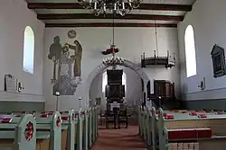 Im Zusammenhang mit der Erhebung zur Pfarrkirche um 1240 wurde die Kapelle zu einer Kirche vergrößert. Da bei Ausgrabungen im Zuge der Renovierung 2001 keine Spuren eines Vorgängerbaus gefunden wurde, bestand die erwähnte Kapelle möglicherweise aus dem späteren eingezogenen und gerade geschlossenen Chor. Dieser erhielt Ende des 13. Jahrhunderts ein Kreuzrippengewölbe, das auf acht Konsolen aufsitzt.[1] Das mit einer Flachdecke überspannte Langhaus wurde in der Zeit der Gotik im Westen mit Backsteinmauerwerk verlängert. Chor und Langhaus sind durch einen Chorbogen getrennt.