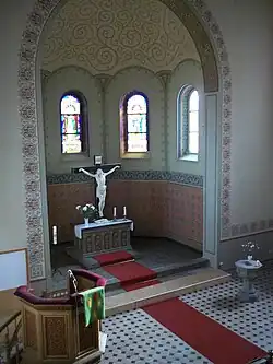 - ↑ Zeitungsbeitrag sowie Fotos der zwei Replik-Fenster: Angela Stoye: Leuchtende Beispiele – Kirchen: Sie sind ihren Gemeinden lieb und wert und oft auch teuer. Um sie zu erhalten, wurde schon viel getan. Aber jedes Jahr bringt auch neue Aufgaben.pdf, in Glaube und Heimat, Nr. 20/2021, 16. Mai 2021, Druckseite 9, abgerufen am 16. Mai 2021