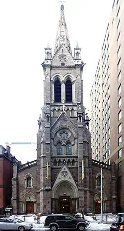 Die Kirche wurde in mehreren Etappen erbaut. Insgesamt dauerte es von 1840 bis 1893, ehe die Kirche fertiggestellt war, zwischenzeitlich wütete 1848 ein Feuer in der Kirche und richtete schwere Schäden an. Der Turm wurde erst 1891 errichtet. Der Architekt Napoleon LeBrun errichtete bereits mehrere Kirchen in New York.