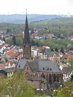 Die Pfarrkirche St. Josef in Bildstock, Blick vom Hoferkopfturm
