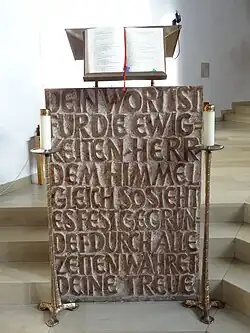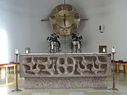 Zelebrationsaltar, Tabernakel und Bronzescheibe von Hans Wurmer
