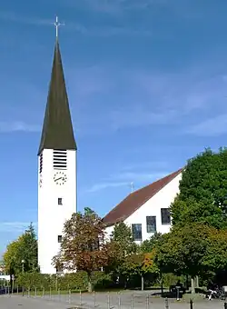 Am 14. Mai 1961 wurde der Grundstein für den Kirchenbau links der Isar gelegt. Die Pläne stammten von dem Münchner Architekten Friedrich Ferdinand Haindl, die ausführende Baufirma war Dionis Irlbeck aus Mettenbach. An Weihnachten 1961 war die neue Kirche erstmals benutzbar. Mitte Oktober 1962 wurde zum Abschluss der Bauarbeiten das etwa vier Meter hohe Turmkreuz aufgesetzt. Am Christkönigsfest des gleichen Jahres wurde die Glockenweihe vorgenommen. Am Patroziniumstag, dem 1. Mai 1963, erfolgte schließlich die feierliche Konsekration durch Bischof Rudolf Graber. Im Zuge dessen wurde auch der Pfarrsitz von Reichersdorf nach Niederaichbach verlegt.[1]