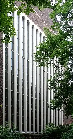 Im Juli 1947 erhielt der Kirchenbaumeister Dominikus Böhm den Auftrag zum Wiederaufbau des Gotteshauses, der 1948 begann. Das noch teilweise erhaltene Seitenschiff wurde in die neue Bausubstanz integriert und unter dem Hochchor eine Krypta errichtet, in der 1956 zum ersten Mal ein Gottesdienst stattfand. An den 1949 vollendeten Rohbau der Kirche wurde im darauf folgenden Jahr eine Sakristei angebaut. Auf der 1952 fertig gestellten Chorempore fand 1954 eine neue Orgel Platz. Sie besitzt elektropneumatische Spiel- und Registertrakturen und wurde mit 47 Registern bei der Bonner Orgelbaufirma Klais bestellt. Bis heute besitzt sie allerdings nur 31 klingende Register, da das zweite Manual als De-facto-Hauptwerk, das Schwellwerk und das Pedal ausgebaut wurden und das erste Manual, das eigentliche Hauptwerk, vakant blieb.[2]