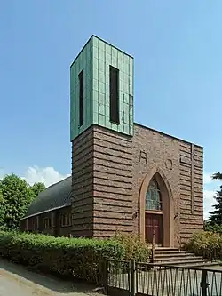 Die Kirche mit Zollingerdach ist aus tiefdunklen Backsteinen erbaut und befindet sich in rund 56 Meter Höhe über dem Meeresspiegel. Sie wurde nach Plänen des Vorsfelder Baumeisters Klapprott erbaut und erinnert in ihrer Architektur an die 1926 geweihte Christkönigskirche von Dominikus Böhm in Bischofsheim. Ihr Turm, in dem sich zwei Glocken befinden, wird von einem Wetterhahn gekrönt. Die monumental anmutende Blendfassade der Eingangsseite ist mit einem Kreuz verziert. Über dem Eingangsportal befinden sich die Buchstaben Alpha und Omega (Α und Ω), der erste und der letzte Buchstabe des klassischen griechischen Alphabets. Sie sind ein Symbol für Anfang und Ende, damit für das Umfassende, für Gott. Die Form des Daches findet sich im Fenster über dem Eingangsportal wieder. Die Sakristei wurde später angebaut. Die Eisenfenster sind noch aus der Bauzeit der Kirche erhalten.