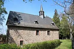 Die unverputzte Kapelle auf rechteckigem Grundriss ist aus Bruchsteinmauerwerk aus rotem Sandstein gebaut. Sie wird von einem verschindelten Satteldach bedeckt, das im Süden mit drei kleinen Giebelgauben und im Norden mit einer Gaube bestückt ist. Der überwölbte polygonale Chor mit Walmdach ist der älteste Baukörper, der später um den Westteil erweitert wurde. Dendrochronologische Untersuchungen haben ergeben, dass das Gebälk des Dachstuhls (Kehlbalken mit Firstsäulen) um 1310 verbaut wurde, während die Balken im Westteil aus dem Jahr 1382/1383 stammen.[12] Die Baunaht an den beiden Langseiten weist auf einen späteren Umbau hin.[1]