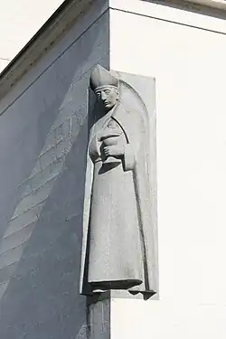 Das Relief in der Altarnische auf der Ostseite stammt von Paul Speck (1896–1966) und zeigt auf weisser Keramik den Heiligen Antonius von Padua beim Austeilen von Brot an die Bedürftigen. Auf der gegenüberliegenden Seite befindet sich in der westlichen Altarnische ein Relief von August Blaesi, das die Heilige Rita zeigt.[18]