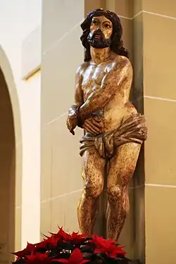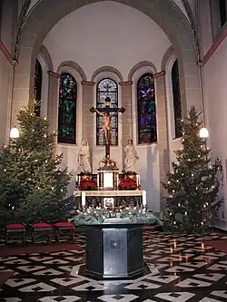 St. Katharina, Altar mit barocker Kreuzgruppe
