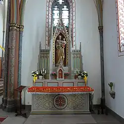 Der Chorraum wurde im Jahr 1980 bis 1981 neu gestaltet. Dabei wurde der Marmoraltar des Jahres 1963 ausgebaut und durch einen Altar des Trierer Bildhauers Willi Hahn ersetzt. Hahn schuf ebenso die Tabernakelstele und den Ambo.[59][60]