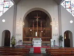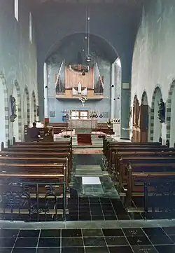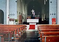 Der Altar wurde im Übergang beider Gebäude platziert und die Bänke beider Kirchenteile auf ihn hin ausgerichtet. An der Westwand wurde eine neue Hauptorgel auf einer Tribüne installiert und eine Chororgel und der Spieltisch für beiden Orgeln im neuromanischen Teil aufgestellt.