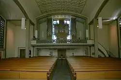 Im Jahr 1969 wurde der Chor der Kirche ein erstes Mal umgebaut sowie das Kirchenschiff renoviert. Bei der erneuten Umgestaltung des Chores im Jahr 1988 wurde der zentral angeordnete Steinaltar durch einen zur Seite gerückten Holzaltar ersetzt. Zusammen mit dem symmetrisch zum Altar angeordneten Holzambo wird die Ebenbürtigkeit von Wortgottes- und Eucharistiefeier verdeutlicht. Der von der Künstlerin Maya Armbruster (1913–1999)[9] aus Stein gefertigte Tabernakel sowie weitere Ölgemälde von der gleichen Künstlerin, welche an den Seitenwänden der Kirche angebracht sind, runden die Innenausstattung der Kirche ab.