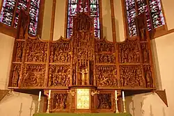 - Das Flügelgemälde des Hochaltars zeigt Darstellungen aus dem Leben des hl. Lambertus
