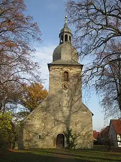 Die romanische Saalkirche aus Bruchsteinen wurde in den folgenden Jahrhunderten mehrfach umgebaut. Das Kirchenschiff wurde verbreitert und ein rechteckiger Chor wurde angebaut. An den Chor wurde nach Norden eine Sakristei errichtet, von der über eine Treppe die Patronatsloge derer von Kniestedt erreicht wird. Das ursprüngliche Portal auf der Südseite ist vermauert. Das heutige Portal liegt auf der Westseite. Es führt zum Vestibül im Erdgeschoss des Dachturms im Westen, in dem eine steinerne Büste eines Bischofs aus der ersten Hälfte des 14. Jahrhunderts steht. Im Innern des Chors weisen die Strebepfeiler und die Konsolen an den Ecken auf ein geplantes steinernes Kreuzgewölbe hin. Gebaut wurde dann aber ein hölzernes Tonnengewölbe. Der Dachturm erhielt 1766 eine achtseitige, schiefergedeckte Haube, auf der eine offene Laterne sitzt.