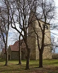 Die Kirche entstand im Barock im Jahr 1708 an Stelle eines spätromanischen Vorgängerbaus. Von dem Vorgängergebäude ist der westlich des Schiffs stehende Kirchturm erhalten. Der Grundriss des Turms ist rechteckig und quer zum Schiff ausgerichtet. Das Schiff präsentiert sich als Saalbau auf rechteckigem Grundriss. Nördlich des Schiffs befinden sich der einfach gestaltete Anbau einer Sakristei und eine Vorhalle.