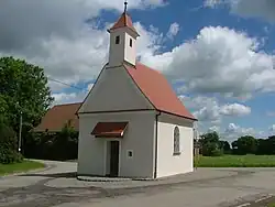 Die Kapelle wurde im 17. oder 18. Jahrhundert errichtet.[2] Der Längsraum mit einer Fensterachse schließt an den halbrund geschlossenen Altarraum an. Der Altarraum verfügt über zwei Rundfenster und eine Flachdecke. Auf dem Giebel befindet sich ein vierseitiger Dachreiter mit Zeltdach.[2]