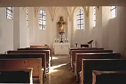 Der Innenraum ist mit einem Sterngewölbe überspannt.