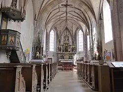 Die Orgel schuf Alois Linder aus Nußdorf am Inn, die Weihe fand am 16. Oktober 2016 statt. Das Orgelgehäuse stammt von Orgelbauer Max Schöglmann (1851–1896) aus Burghausen, er hatte es 1883 für ein Instrument mit sechs Registern vorgesehen, ein 7. Register, das Pedalregister, stand hinter der Orgel.