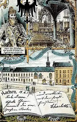 - ↑ Christian Quix: Das ehemalige Kloster der Sepulchrinen zu St. Leonhard in Aachen. In: Beiträge zur Geschichte der Stadt Aachen und ihrer Umgebung. Verlag J. A. Mayer, Aachen 1838. S. 12–27 (digitalisat)